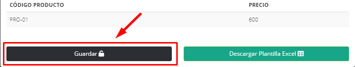 Luego hacer clic en Descargar Plantilla Excel que lo enviara directamente a un archivo de Excel donde ingresaremos los productos a asignar.