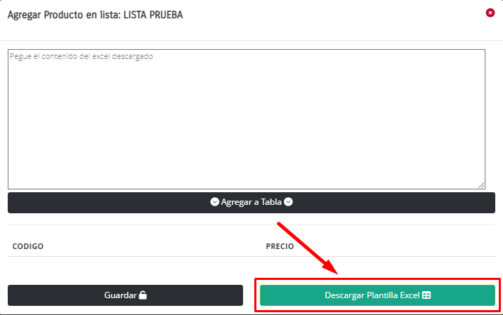 Agregar múltiples productos: Aquí podrá agregar varios productos a la lista de precio.