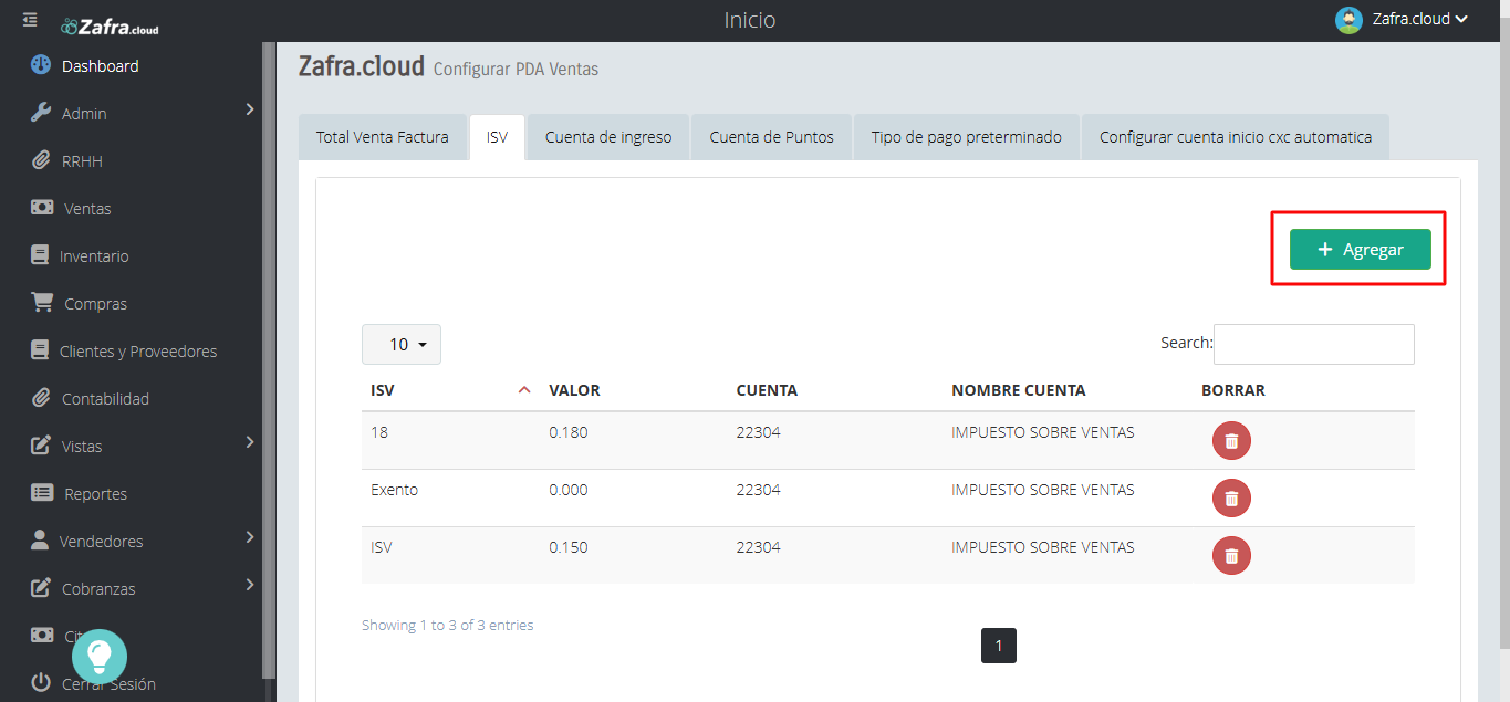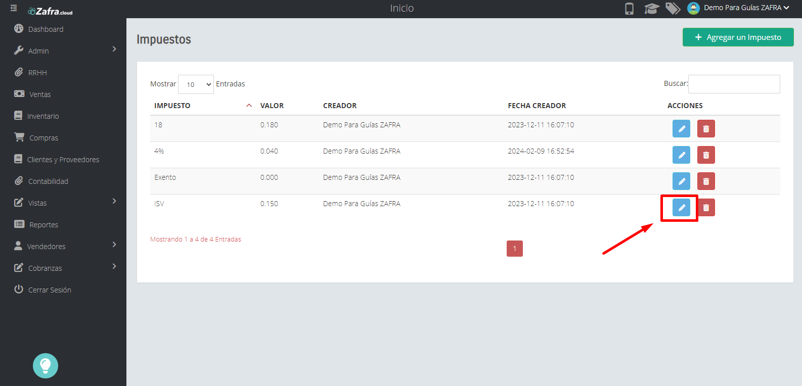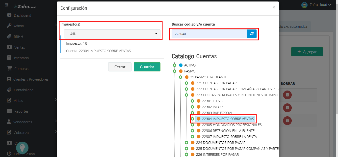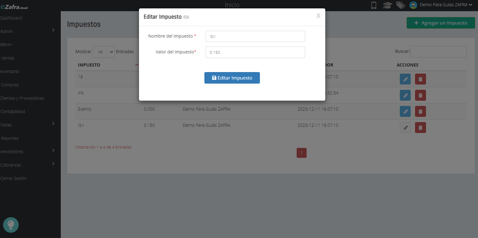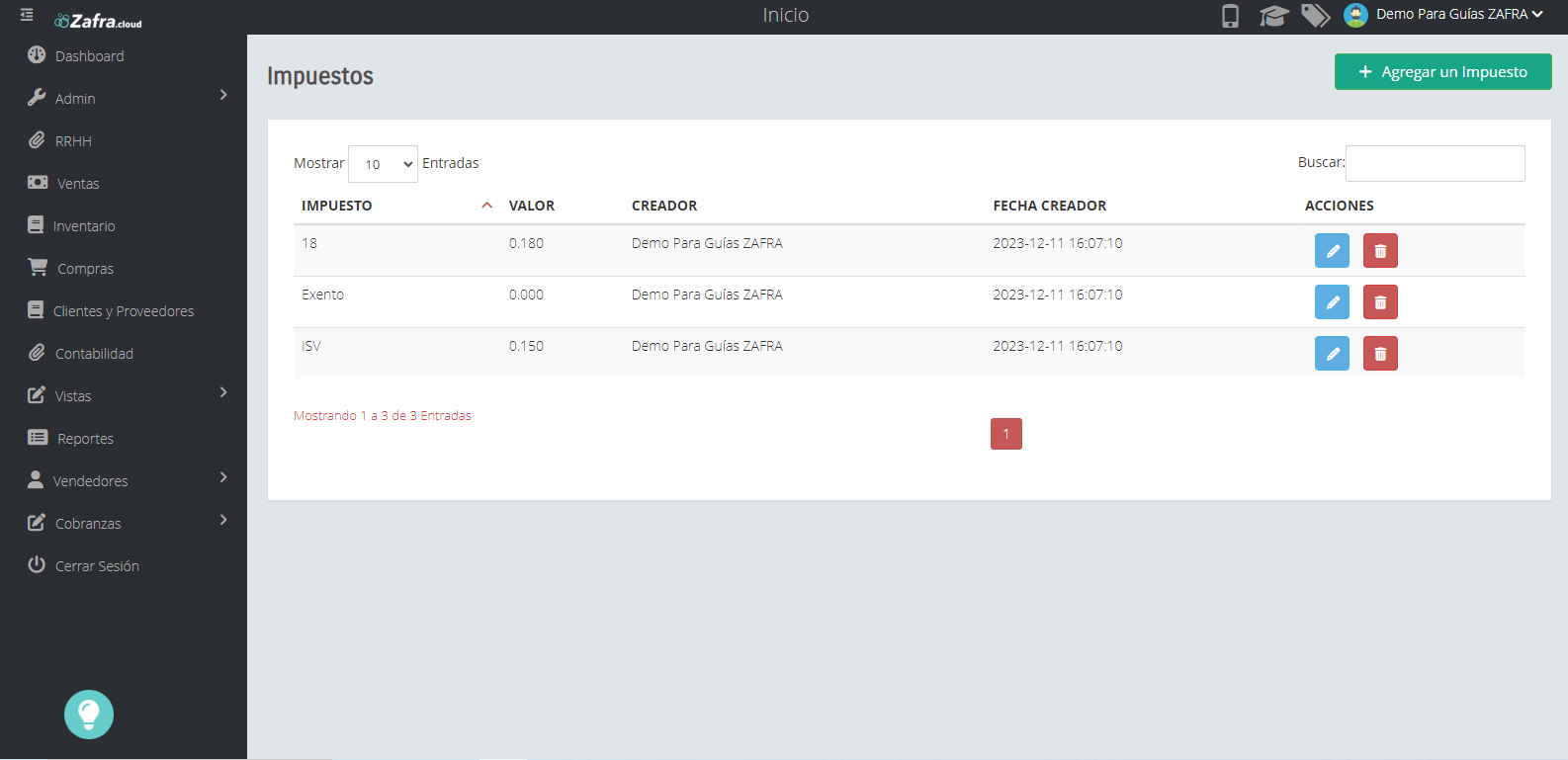 Ahora ya nos aparecerá nuestro impuesto agregado para poder utilizarlo en nuestro sistema Zafra.cloud.