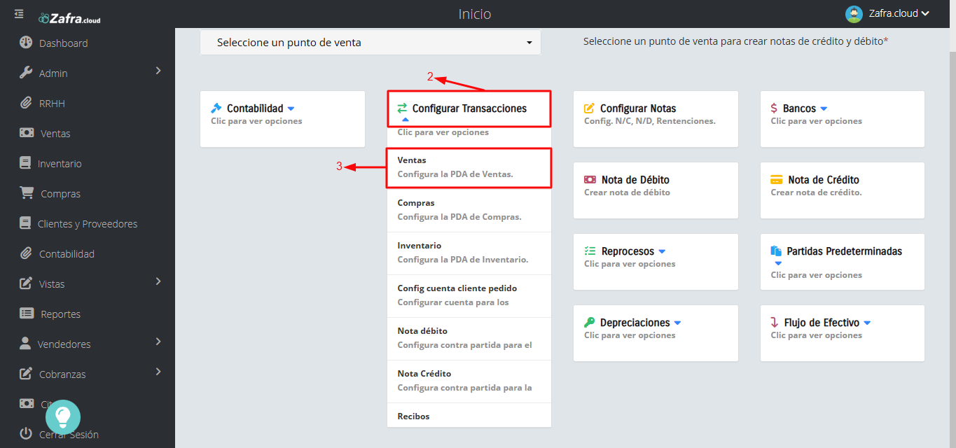 - Ingresaremos al modulo de Contabilidad → Configurar transacciones → Ventas.