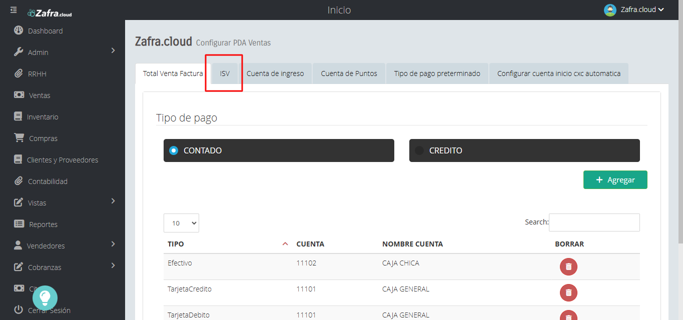 - Observaremos la siguiente pantalla, nos iremos a la pestaña de ISV y para crear el enlace daremos al boton de "Agregar".