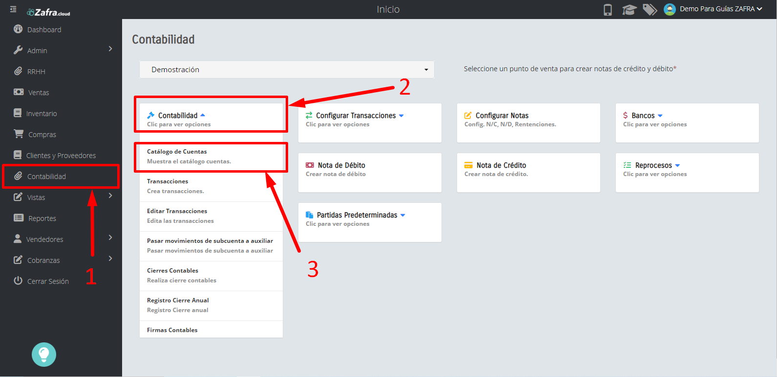 Ingresamos al módulo de Contabilidad→Contabilidad→ Catálogo de cuentas