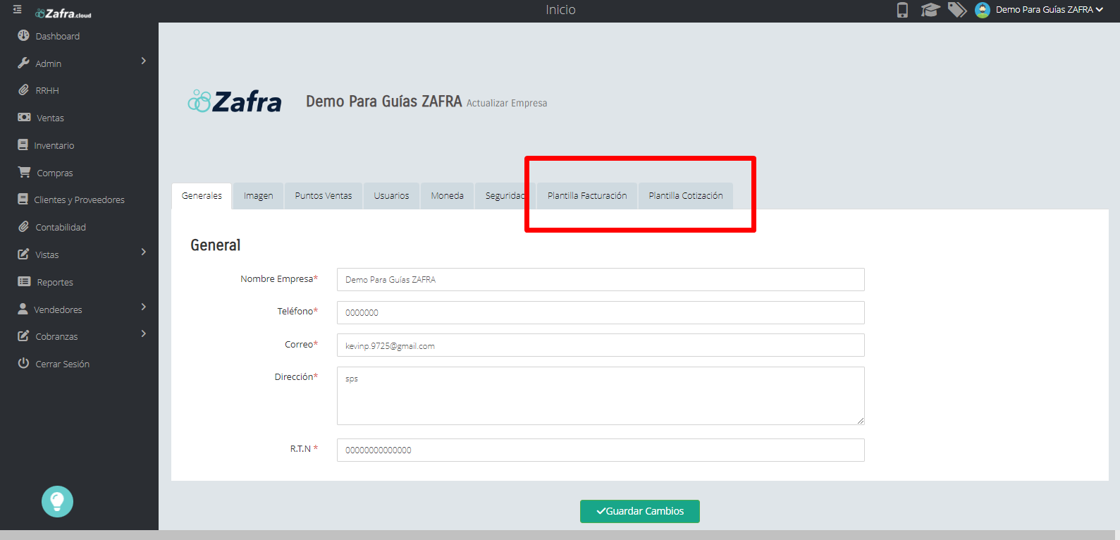 Para cambiar la plantilla de facturación o cotización debemos seguir los siguientes pasos: