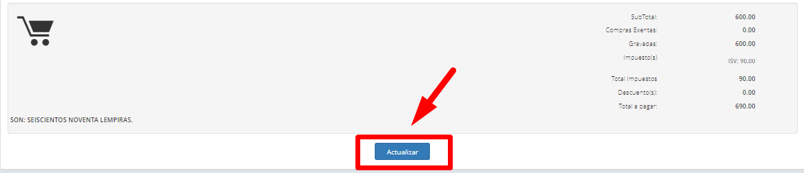 También se nos dará un desglose de los precios e impuestos que incluye la compra, una vez verificados los datos, damos clic en el botón Actualizar.
