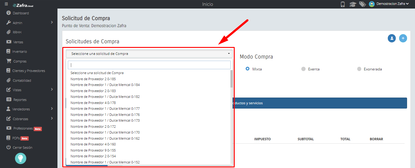 Si desea saber como crear una solicitud de compra, puede visitar la siguiente guía: Solicitud de compra