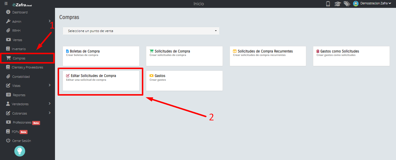 Ingresar al módulo de Compras→Editar Solicitud de Compras