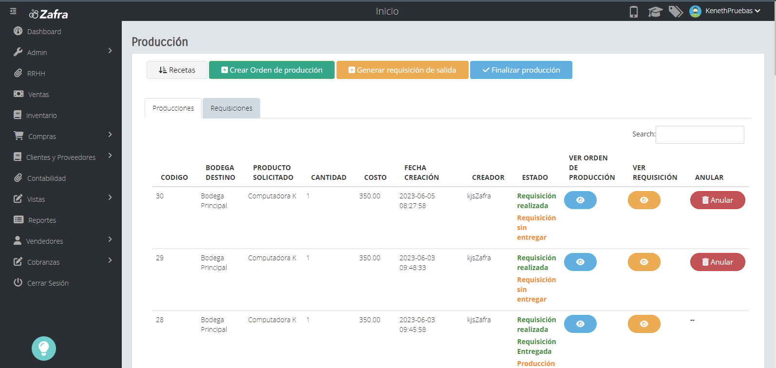 - Al ya tener entrega nuestra requisición solo nos queda terminar dicha producción