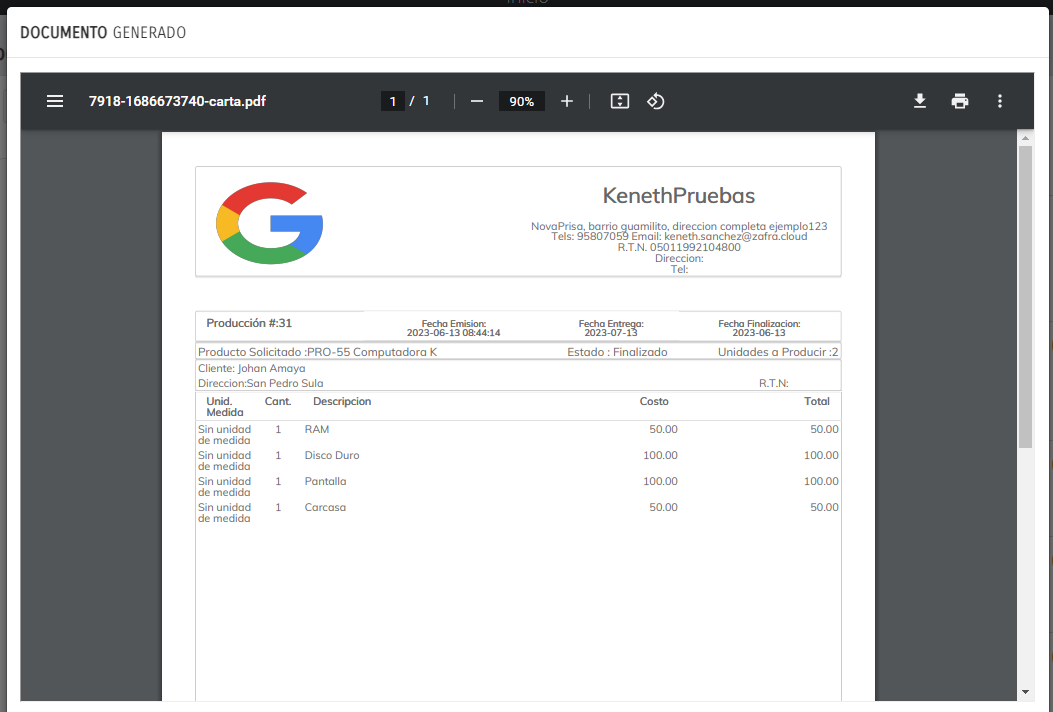- Así finalizamos dicha producción y se genera nuestro documento sobre esto